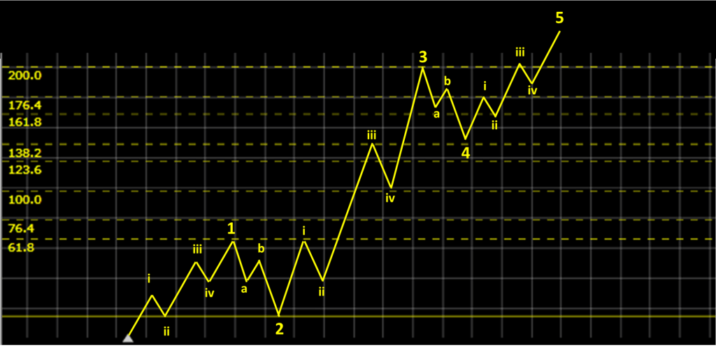 In the majority of cases, impulse waves will exhibit what is called an “extension” to their normal pattern. This means that one of the impulse wave’s three motive sub-waves will be an elongated impulse with exaggerated subdivisions. This can happen in either Wave 1, 3, or 5, typically in only one of the waves.