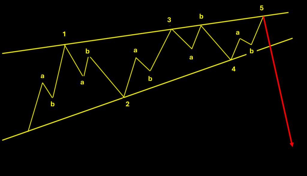 Most ending diagonals have a wedge shape where they fit within two converging lines. However, there are cases where the wedge is expanding (though it is rare).